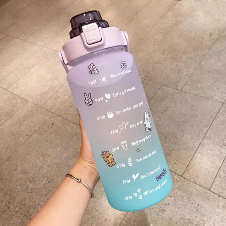 • *المميزات* • شفافة ومميزه بألوان مختلفه ورسومات شيك • بتقسملك يومك بالوقت بين كل مرة تشرب فيها والتانية • عليها جمل لطيفة تشجعك علي شرب الماية عشان صحتك • غطاها محكم وفيه شفاطه عشان تشرب بسهولة • هتاخدها معاك في أي مكان الجيم، الشغل، النادي.. • حجمها كبير وهتكفيك طول اليوم • خامتها بلاستيك صحي • *وصف المنتج* • زجاجة مياة 2000 مللي • السعة : 2000 ملي • الخامة : بلاستيك صحي • *محتوى العبوة* • زجاجة مياة 2000 مللي •